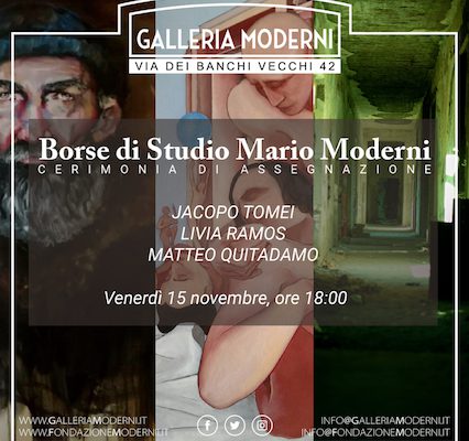 “Galleria Moderni” è il progetto ideato e realizzato dalla Fondazione Mario Moderni per valorizzare il talento e la creatività dei giovani artisti italiani o residenti in Italia e promuoverne l’inserimento nel mercato dell’arte. Gli artisti, selezionati da una giuria di esperti, avranno la possibilità gratuita di esporre e vendere le proprie opere negli appositi spazi della Galleria “Galleria Moderni” di via dei Banchi Vecchi, nel cuore del centro storico e culturale di Roma.